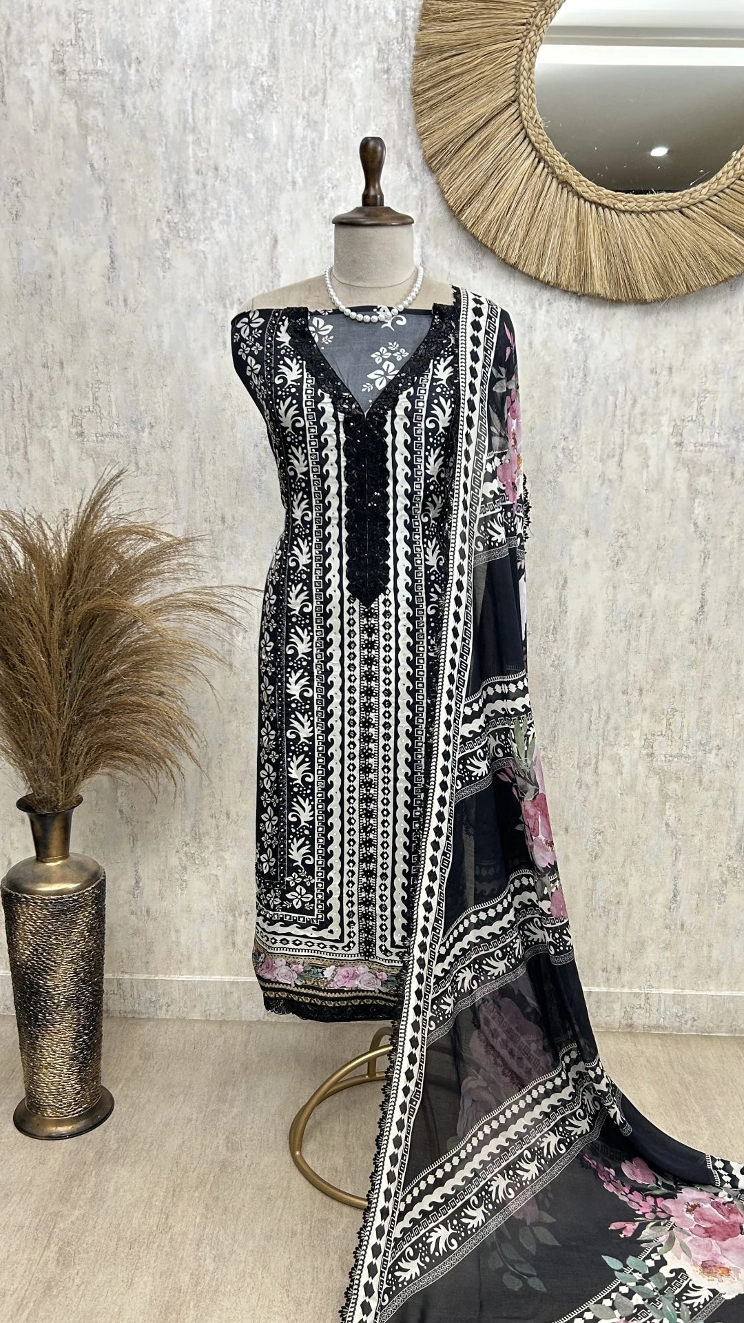 Bold prints meet delicate sparkle in our Digital Print Maslin Unstitched Suit Set, designed for the modern woman who loves tradition with a twist. Made from soft and flowy maslin fabric, this set features vibrant digital prints that bring life and color to your wardrobe.