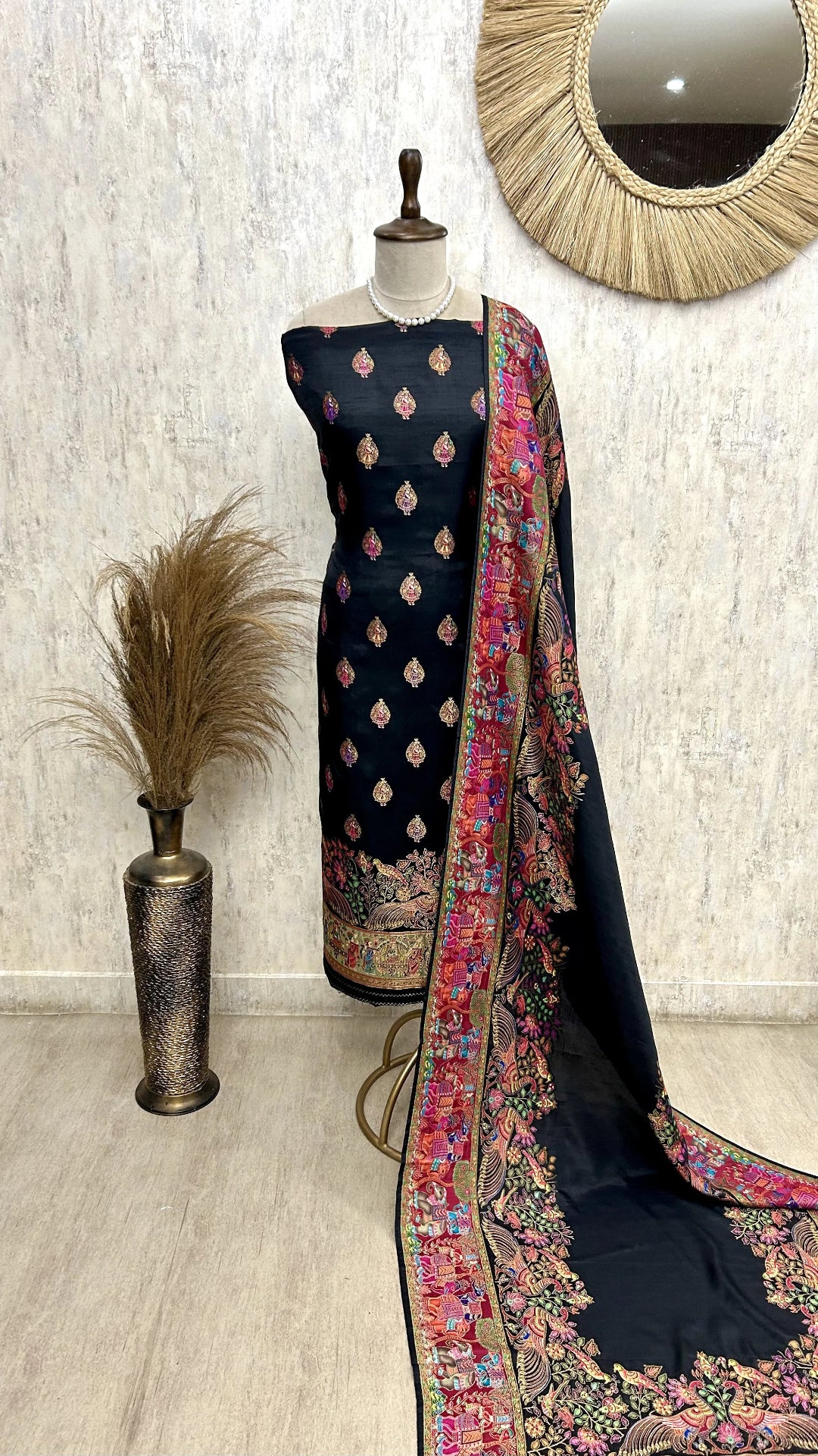 Elevate your wardrobe with this Silk Unstitched Suit Set, paired with a luxurious silk dupatta. Crafted from premium silk fabric, this set offers a soft texture and rich sheen, allowing you to tailor it to your perfect fit and style. The included silk dupatta complements the suit, enhancing its elegance for formal occasions or festive events. Designed for those who value quality and personalization, this unstitched suit set provides timeless sophistication and versatility.